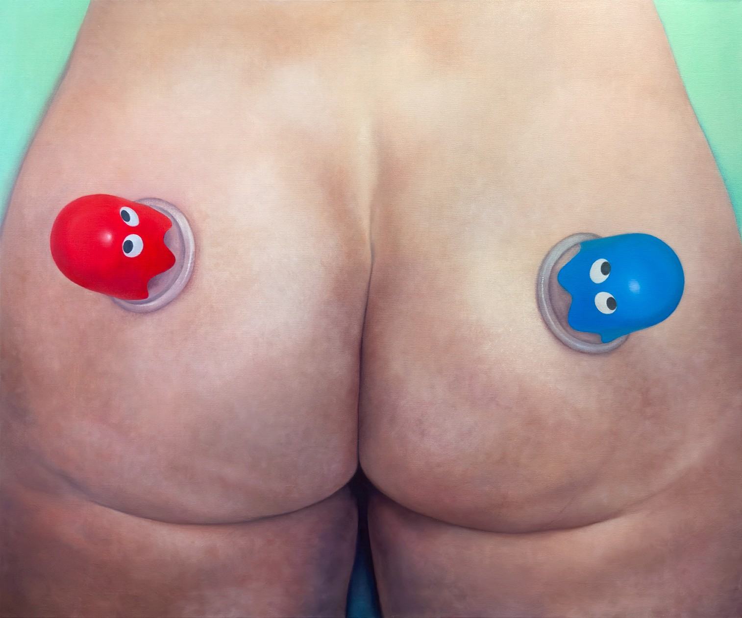 Obrazy Joanny Kaucz są dziewczyńskie, zadziorne, łobuzerskie. Artystka czerpie z ikonografii popkultury, sięga po obrazy znalezione w Internecie, migawki z mediów społecznościowych i własną fotografię. Wybiera ciasne, sugestywne kadry, które następnie – wyolbrzymione i przeskalowane – przenosi ze świata cyfrowego na klasyczne pole malarskiej ekspresji. W ten sposób powstają wielkoformatowe płótna, nawiązujące do tradycji hiperrealizmu, ale jednocześnie świadomie osadzone w estetyce współczesnego obiegu obrazów.