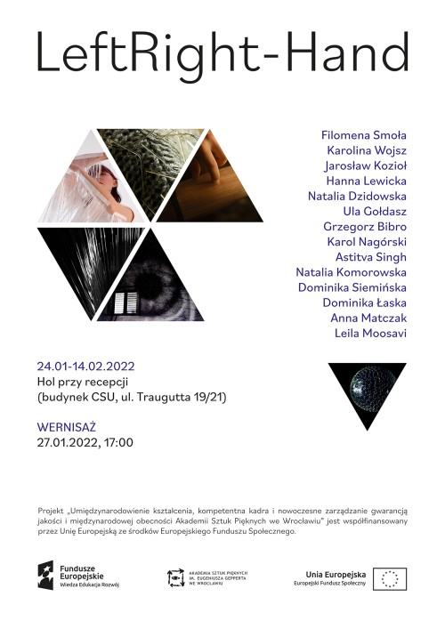 Zapraszamy na wystawę „LeftRight-Hand” prezentującą realizacje studentów powstałe w czasie semestru zimowego 2021/2022 w pracowni Visiting Professor/Visiting Artist Studio prowadzonej przez Annę Mlasowsky.
